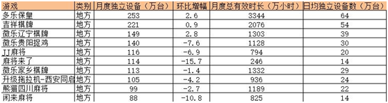 通用(yòng)性棋(qí)牌表现不佳(jiā),地方棋牌也(yě)不尽如人意。其(qí)中,腾讯出品(pǐn)的《麻将来了》降幅(fú)最大(dà),达15.7%。而(ér)知名(míng)度颇高的闲徕(lái)系产品《闲来(lái)麻将》,降幅也过(guò)10%。《多乐保皇》则(zé)以2.6%的增(zēng)幅,占据地方棋牌排行榜的榜首位置。风暴娱乐曾(céng)介绍过的多乐、吉祥(xiáng)、微乐等地(dì)方棋(qí)牌(pái)大(dà)户,低调做产品,实力不可小觑。