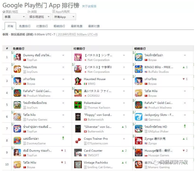 5 月 9 日 Google Play 泰国(guó)娱乐场游戏类 App 榜单|来源:App Annie