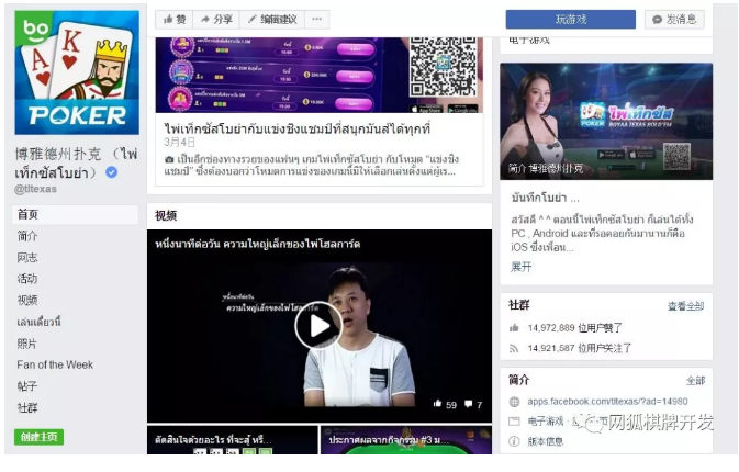 “泰国全(quán)民皆赌”是博雅互动(dòng)在(zài)总结泰国成(chéng)绩时给出的原因。博雅从页游时(shí)代,就开始(shǐ)在泰国 Facebook 上经营**游(yóu)戏。国内市场虽然整体向下,但博(bó)雅德州扑克在泰国 Facebook 的(de)游(yóu)戏粉丝已经达到 1492 多万人,泰(tài)国整个人口才 6886 万。根据之前媒体的报道,2015 年时,粉丝数为 270 万(wàn)。