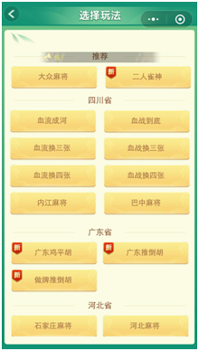 而为了解决玩家留存的问题,新版的《麻(má)将来了》也(yě)做了新(xīn)的(de)设计。除了在游戏大厅(tīng)界(jiè)面增加了《梦幻金花(huā)》的(de)游戏(xì)入口以外,从“更多(duō)”里面还(hái)新设了“每周新游”,玩家从此处可(kě)进入《QQ游戏》小程序(xù),选(xuǎn)择其他想要体验的游戏。