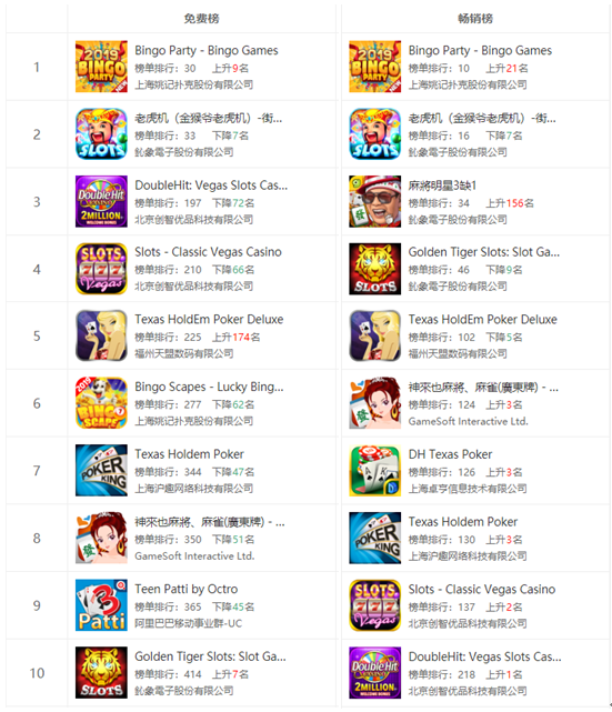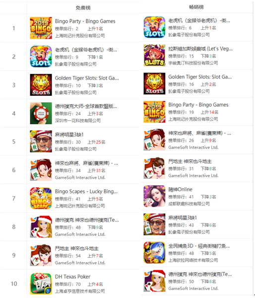 Google Play赌(dǔ)场游(yóu)戏免(miǎn)费榜中,国(guó)内厂商占(zhàn)据6席,台湾厂商占据4席,而(ér)畅销榜则是五五开的局面(miàn)。