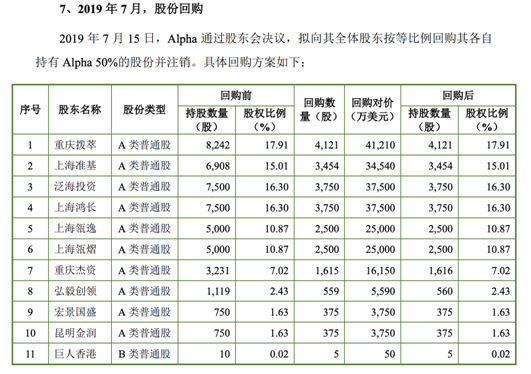 Alpha将向全体股东等(děng)比回购50%股权,回购完(wán)成后,巨人(rén)网络将收(shōu)购(gòu)Alpha42.3%的股权。