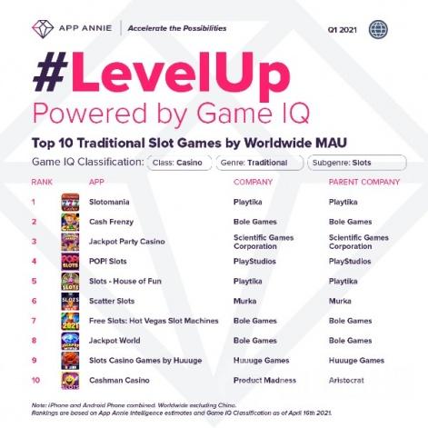 全球传统类(lèi)老虎机手游月活用户排行榜