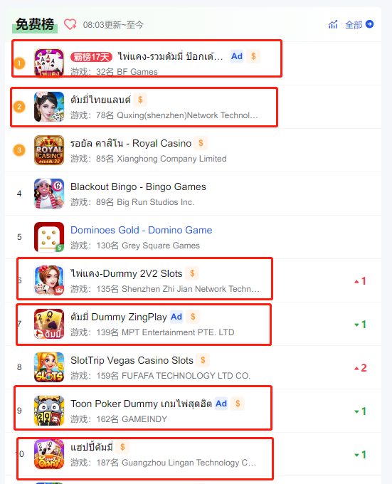 Dummy是泰国的本土(tǔ)棋牌游戏玩(wán)法,同时也是泰国的国民棋牌(pái)游戏(xì)玩法之一(yī)。在(zài)泰国的Google Play和App Store的卡牌游戏排行榜中,Dummy玩法的游戏占(zhàn)多(duō)数(shù)。