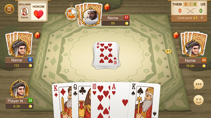 这是一(yī)款(kuǎn)源于沙(shā)特阿拉伯的棋牌游戏,同(tóng)样以合作方(fāng)式进(jìn)行,使用32张牌组(从标(biāo)准国(guó)际套牌中删除(chú)所有的2、3、4、5、6和小丑),每个花色的卡牌从大(dà)到小等级为A-K-Q-J-10-9-8-7。