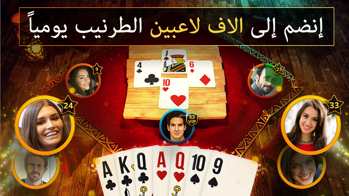 Tarneed同样是中东地区最受欢迎(yíng)的纸牌游(yóu)戏(xì)之(zhī)一。规则与Baloot相似,但是手牌数量以(yǐ)及具体规则不同。这(zhè)同样(yàng)是一个4人(rén)游戏,两个(gè)玩家组成团(tuán)队(duì)(合(hé)作伙伴将坐在彼此对面(miàn)),并使用标准的52张牌组。(减(jiǎn)去大(dà)小(xiǎo)王(wáng))
