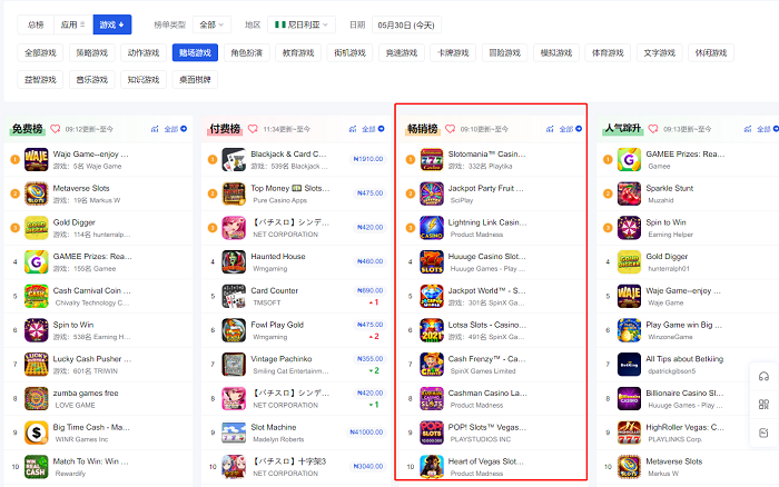 根据尼日利亚的棋牌游戏排行(háng)榜,我们可以发现,Casino类、宾果(guǒ)类游戏在尼日(rì)利亚较为流行(háng),常见的拉霸游戏(xì)随处可见,除此之外21点(diǎn),飞行棋在尼日利亚也比较流行。