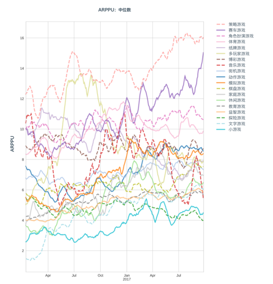 而从付费(fèi)玩家的平均收入情况来看,棋牌游戏的表现就没(méi)那么(me)亮眼(yǎn)了。只(zhī)能算中(zhōng)位(wèi)数(shù)水平。纸牌游(yóu)戏和博彩游(yóu)戏的排行分别位于第五(wǔ)和第七位(wèi)。