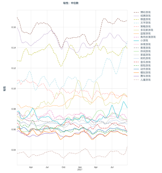 而(ér)在用户(hù)粘性这一领(lǐng)域,棋牌游戏(xì)又扳回一城。博彩游戏、纸牌游戏、棋盘游戏(xì)再次(cì)位(wèi)居前三(sān)甲(jiǎ)。博彩游戏的用(yòng)户粘性(xìng)甚至达了15%,是表现较差的游戏类型(xíng)的4倍(bèi)以上。