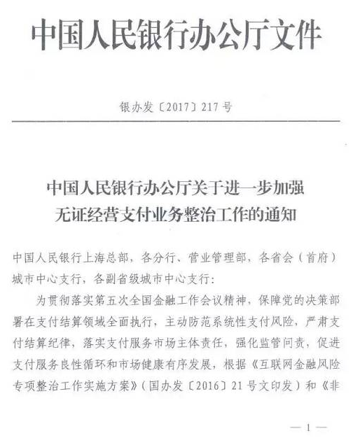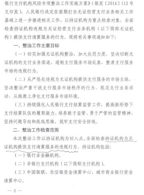 而随着国家监管的不断完善,对无证(zhèng)运营第(dì)三方支付的平台也势必带(dài)来一定的打击。自(zì)去年央行联合13部位发布《非(fēi)银(yín)行支付机(jī)构(gòu)风险专项整治工作实施方(fāng)案》之后;近日央行又发布《无证经营(yíng)支付业务整治(zhì)工作通知》