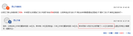 根据2017年7月昆仑万维(wéi)董秘发布的(de)信息,闲徕(lái)互(hù)娱2017年2-6月为上市公(gōng)司贡献(xiàn)了1.61亿元净利润。月均(jun1)贡献净(jìng)利润在(zài)3220万,根据被(bèi)收(shōu)购的51%的(de)股权比例,基本与2016年(nián)被收购时的利润持平。