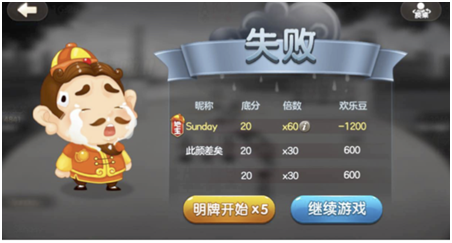 该模式为绝(jué)大多数游戏产品的(de)盈利(lì)来源(yuán),虽然棋牌游戏的付费点不会特别多,但是(shì)本身的竞技性质会让虚(xū)拟货(huò)币的(de)流通非常频繁。金币的消耗根据玩法规则、倍数的不同,各类游戏差异较大,下图为(wéi)斗(dòu)地主的结(jié)算界(jiè)面: