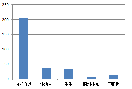 而从棋牌游戏的细(xì)分类型来看,麻(má)将依(yī)然是独占鳌头(tóu),过审数量达204款。其次(cì)为斗地主38款,牛牛(niú)34款,三张牌14款,德州扑克(kè)6款。其中过审(shěn)牛牛游戏(xì)最(zuì)多的出版单(dān)位为:杭州润趣科技有限公司、杭州紫府(fǔ)网络科技有限公司。两家出版公司共过(guò)审18款牛牛游戏(xì),占比过半(bàn)。