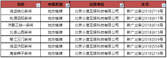 小度互娱1月过(guò)审地方(fāng)棋牌(pái)