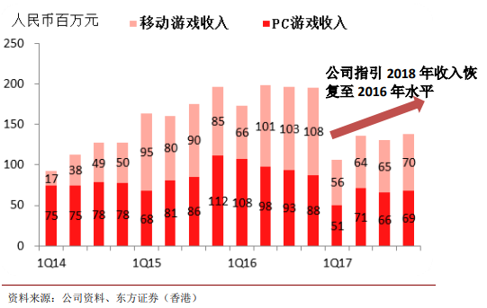 游戏收入将继(jì)续回升:公司指引 2018 年收(shōu)入目标恢复至(zhì) 2016 年水平