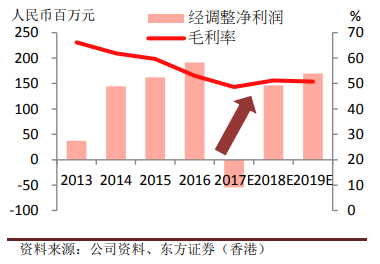 东方证券将 2017 年预测收(shōu)入及(jí)净利润下调,以反(fǎn)映房卡模式的影响(xiǎng),我们目(mù)前 预测 2017 年收入同比下降 35%,经调(diào)整净亏损(sǔn)为人(rén)民(mín)币 5200 万(wàn)元。预(yù)计(jì) 2018 年将(jiāng)扭亏为盈(yíng),收入同比增长 77%,毛(máo)利率上升 4.1 个(gè)百分点,得出经(jīng)调整净利(lì)润为人民币 1.68 亿元(yuán)。网(wǎng)狐科技致力(lì)于棋牌游(yóu)戏开(kāi)发14年,拥(yōng)有大(dà)量棋牌游(yóu)戏开发运营经验和大(dà)批成功案例。