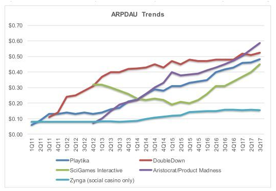 **类游戏公司头部(bù)厂商的ARPDAU趋(qū)势图